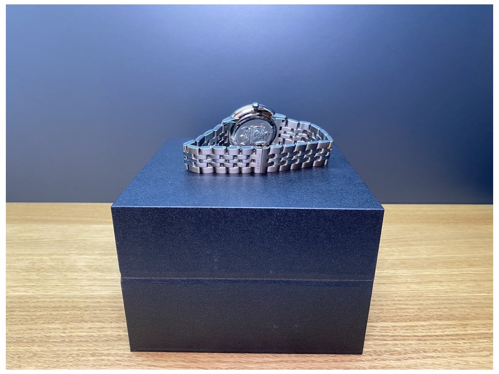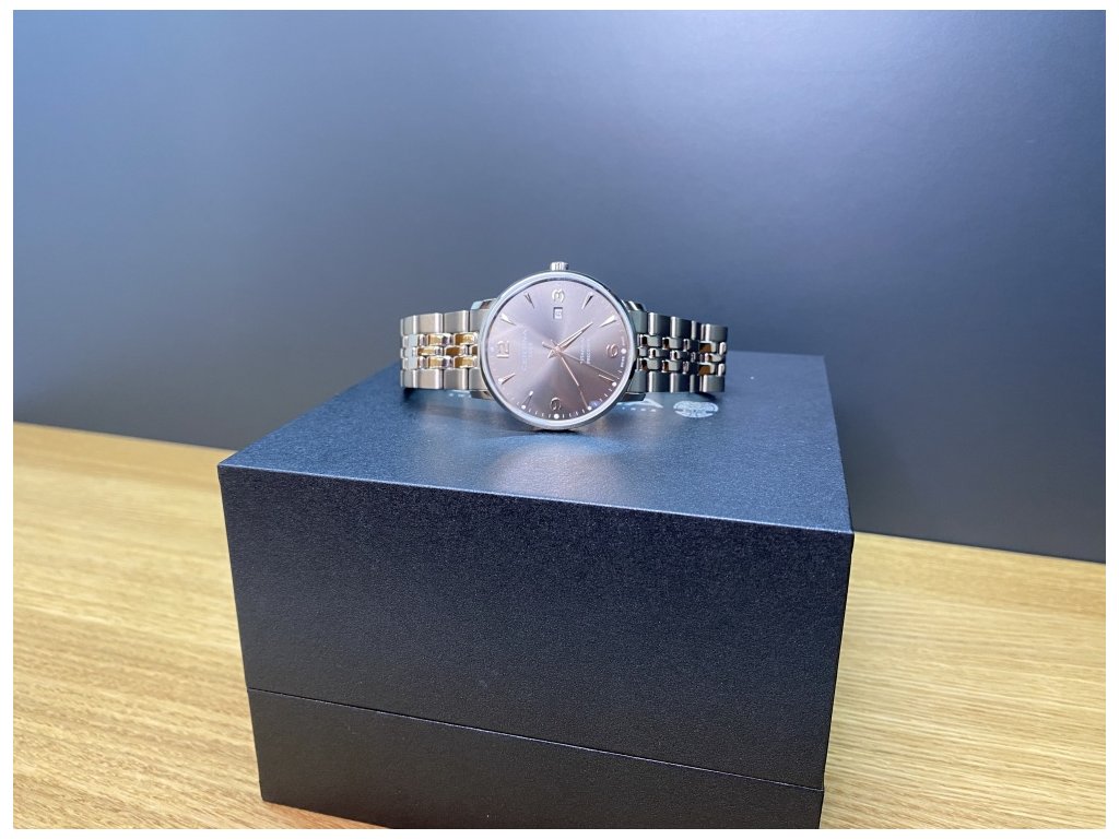 Pánské společenské hodinky v titanovém pouzdře. Číselník s ukazatelem data je chráněn safírovým sklíčkem. Hodinky mají vodotěsnost 100M.