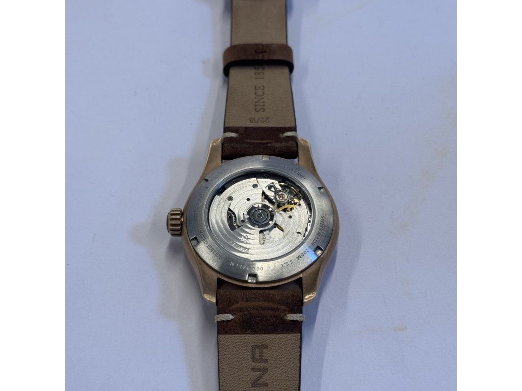 Aktuální stav: Téměř nenošené, v krásném stavu, bez oxidace bronzu, 3/26 celkový servis a nový kožený řemínek (nepoužitý). Chod stroje i vodotěsnost je OK. Zakoupeny u Fr. Hanák 1/2019. Součástí je původní krabička i záruční list.