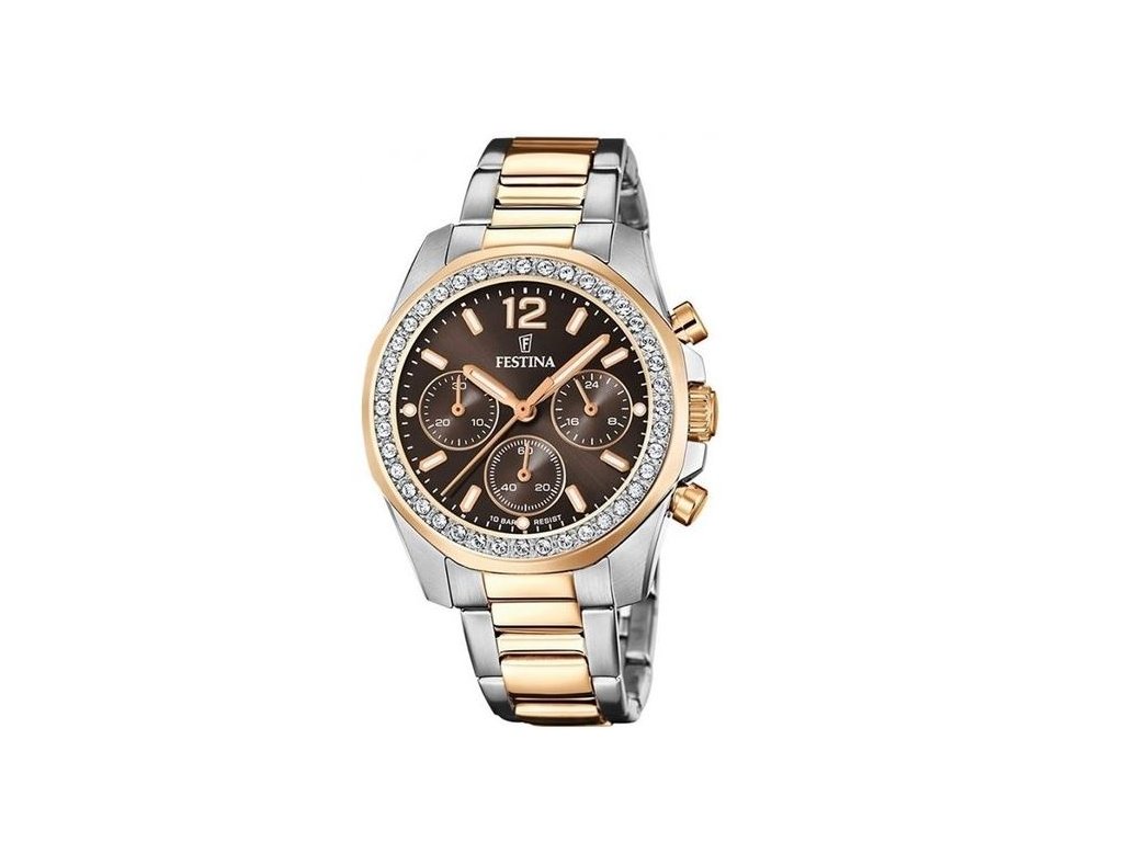 O značce: Vize společnosti Festina je nabízet hodinky, které kombinují kvalitu, preciznost a atraktivní ceny, čímž oslovují široké spektrum zákazníků po celém světě. Festina se také aktivně angažuje v oblasti sportu a je oficiálním časoměřičem mnoha cyklistických závodů, což podtrhuje její závazek k výkonu a dynamice. Dnes je Festina synonymem pro styl a funkčnost, a její hodinky jsou spojovány s aktivním životním stylem a elegancí. Festina je globální značka se sídlem v Barceloně ve Španělsku a její vysoce technologické výrobní centrum se nachází ve Švýcarsku.