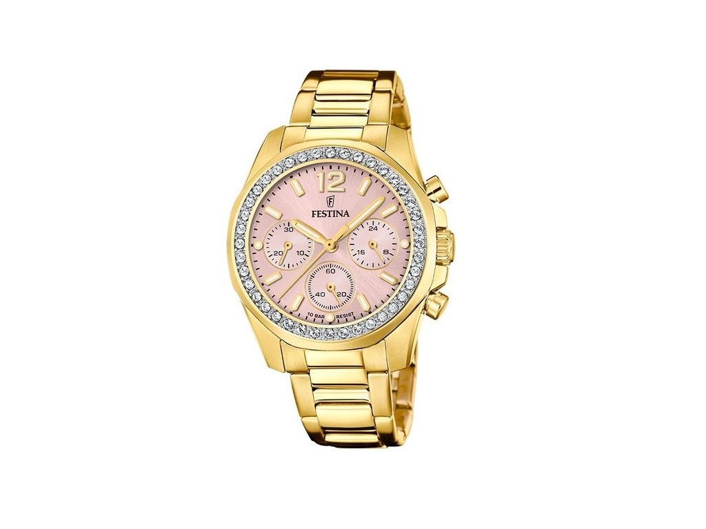 O značce: Vize společnosti Festina je nabízet hodinky, které kombinují kvalitu, preciznost a atraktivní ceny, čímž oslovují široké spektrum zákazníků po celém světě. Festina se také aktivně angažuje v oblasti sportu a je oficiálním časoměřičem mnoha cyklistických závodů, což podtrhuje její závazek k výkonu a dynamice. Dnes je Festina synonymem pro styl a funkčnost, a její hodinky jsou spojovány s aktivním životním stylem a elegancí. Festina je globální značka se sídlem v Barceloně ve Španělsku a její vysoce technologické výrobní centrum se nachází ve Švýcarsku.