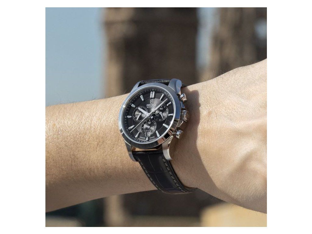 O značce: Vize společnosti Festina je nabízet hodinky, které kombinují kvalitu, preciznost a atraktivní ceny, čímž oslovují široké spektrum zákazníků po celém světě. Festina se také aktivně angažuje v oblasti sportu a je oficiálním časoměřičem mnoha cyklistických závodů, což podtrhuje její závazek k výkonu a dynamice. Dnes je Festina synonymem pro styl a funkčnost, a její hodinky jsou spojovány s aktivním životním stylem a elegancí. Festina je globální značka se sídlem v Barceloně ve Španělsku a její vysoce technologické výrobní centrum se nachází ve Švýcarsku.