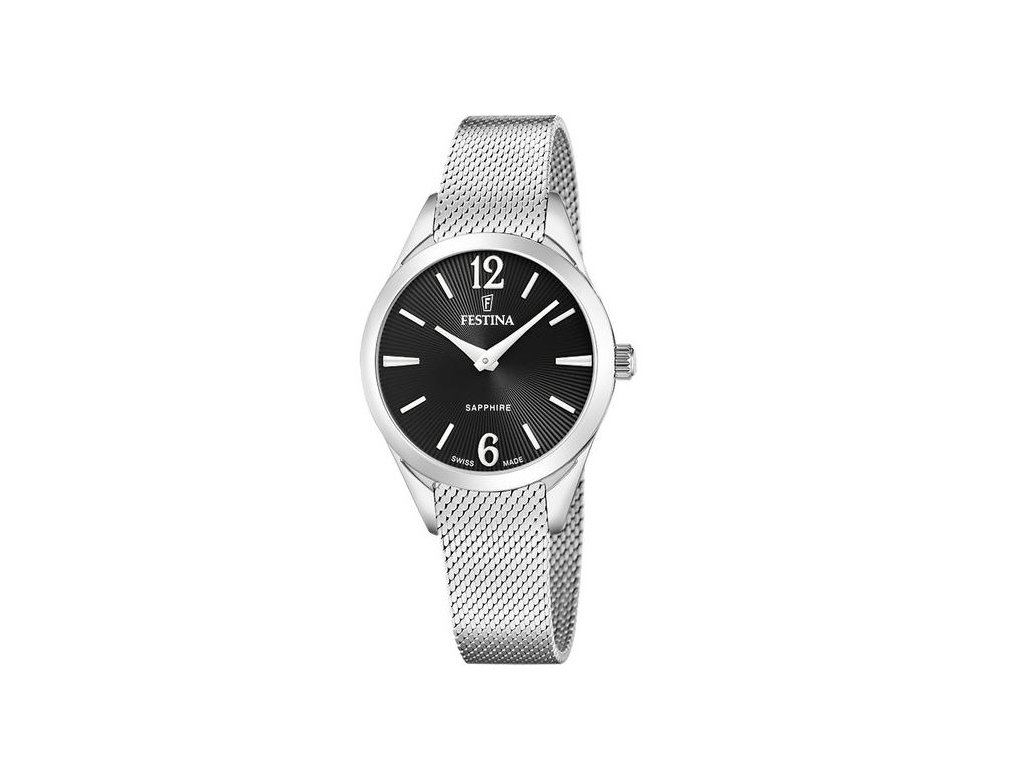 O značce: Vize společnosti Festina je nabízet hodinky, které kombinují kvalitu, preciznost a atraktivní ceny, čímž oslovují široké spektrum zákazníků po celém světě. Festina se také aktivně angažuje v oblasti sportu a je oficiálním časoměřičem mnoha cyklistických závodů, což podtrhuje její závazek k výkonu a dynamice. Dnes je Festina synonymem pro styl a funkčnost, a její hodinky jsou spojovány s aktivním životním stylem a elegancí. Festina je globální značka se sídlem v Barceloně ve Španělsku a její vysoce technologické výrobní centrum se nachází ve Švýcarsku.