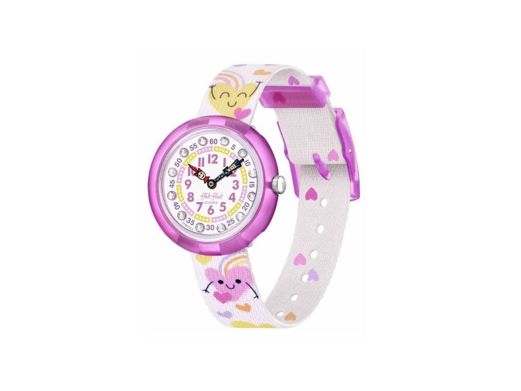 Dětské hodinky se vyrábí v dílnách švýcarské značky Swatch. Číselník zaujme na první pohled hracími ručkami ve tvaru panáčka a panenky, které jsou poznávacím znamením hodinek Flik Flak. Číselník zdobí výrazné číslice. Průsvitné pouzdro nechává nahlédnout do nitra bateriového strojku. Výhodou textilního řemínku, kterým je model opatřen je možnost praní v pračce. Pokud se hodinky zašpiní, stačí je vložit do ochranného sáčku, aby nedošlo k jejich poškrábání a prát na 40 st. Hodinky jsou navíc vodotěsné a je možno je používat i na plavání což je velká výhoda při dětských aktivitách.