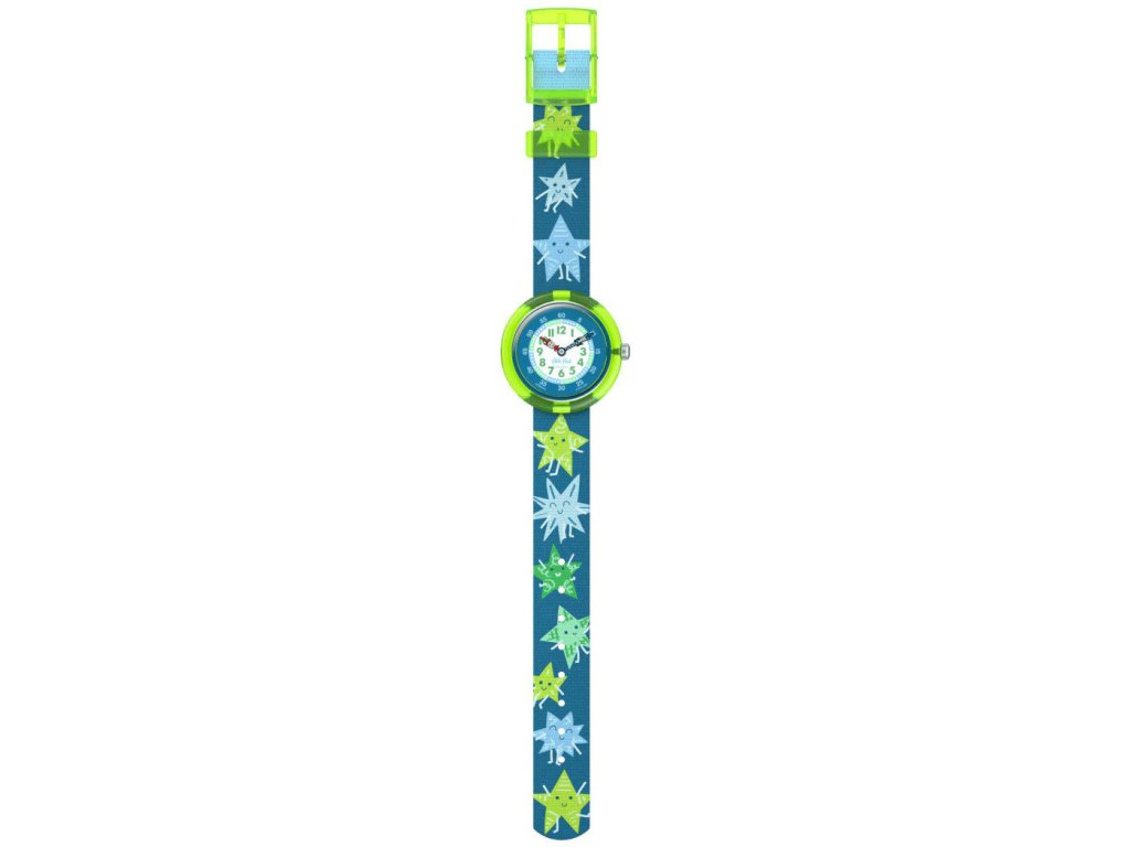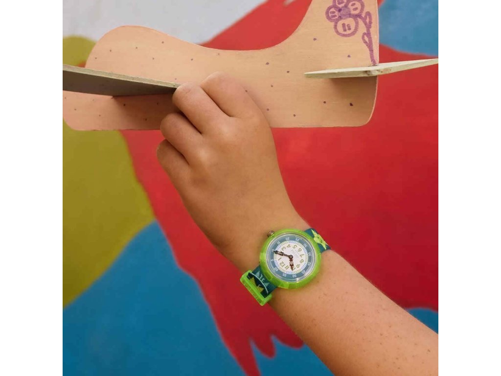 Dětské hodinky se vyrábí v dílnách švýcarské značky Swatch. Číselník zaujme na první pohled hracími ručkami ve tvaru panáčka a panenky, které jsou poznávacím znamením hodinek Flik Flak. Číselník zdobí výrazné číslice. Průsvitné pouzdro nechává nahlédnout do nitra bateriového strojku. Výhodou textilního řemínku, kterým je model opatřen je možnost praní v pračce. Pokud se hodinky zašpiní, stačí je vložit do ochranného sáčku, aby nedošlo k jejich poškrábání a prát na 40 st. Hodinky jsou navíc vodotěsné a je možno je používat i na plavání což je velká výhoda při dětských aktivitách.