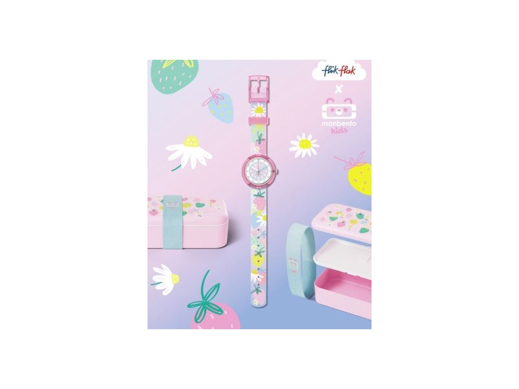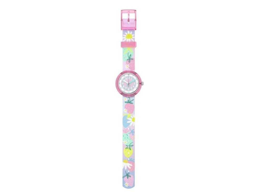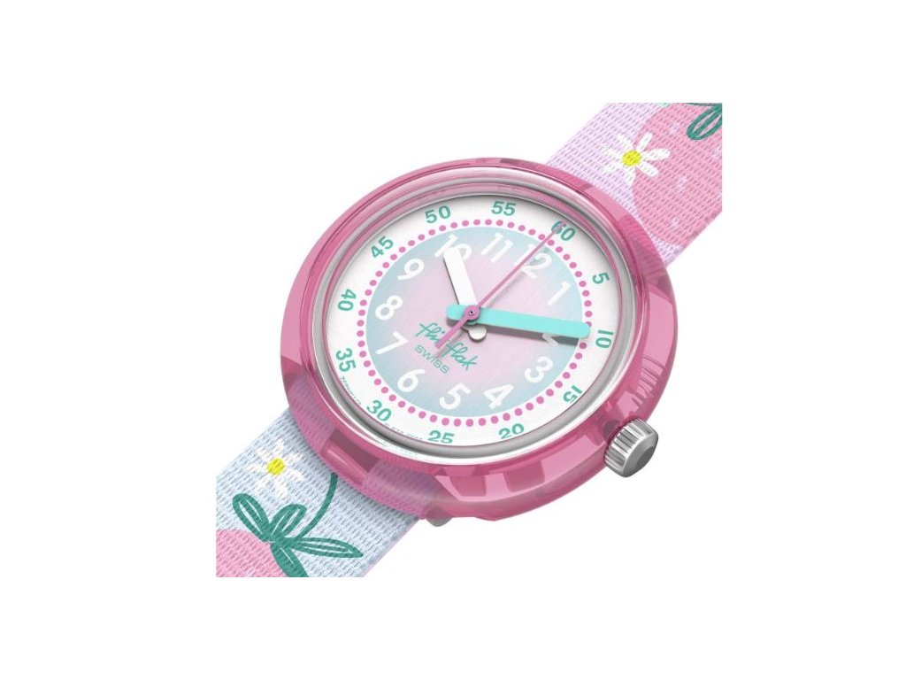 Dětské hodinky Flik Flak se vyrábí v dílnách švýcarské značky Swatch. Číselník zdobí výrazné číslice. Průsvitné pouzdro nechává nahlédnout do nitra bateriového strojku. Výhodou textilního řemínku, kterým je model opatřen je možnost praní v pračce. Pokud se hodinky zašpiní, stačí je vložit do ochranného sáčku, aby nedošlo k jejich poškrábání a prát na 40 st. Hodinky jsou navíc vodotěsné a je možno je používat i na plavání což je velká výhoda při dětských aktivitách. Součástí balení je svačinový box.