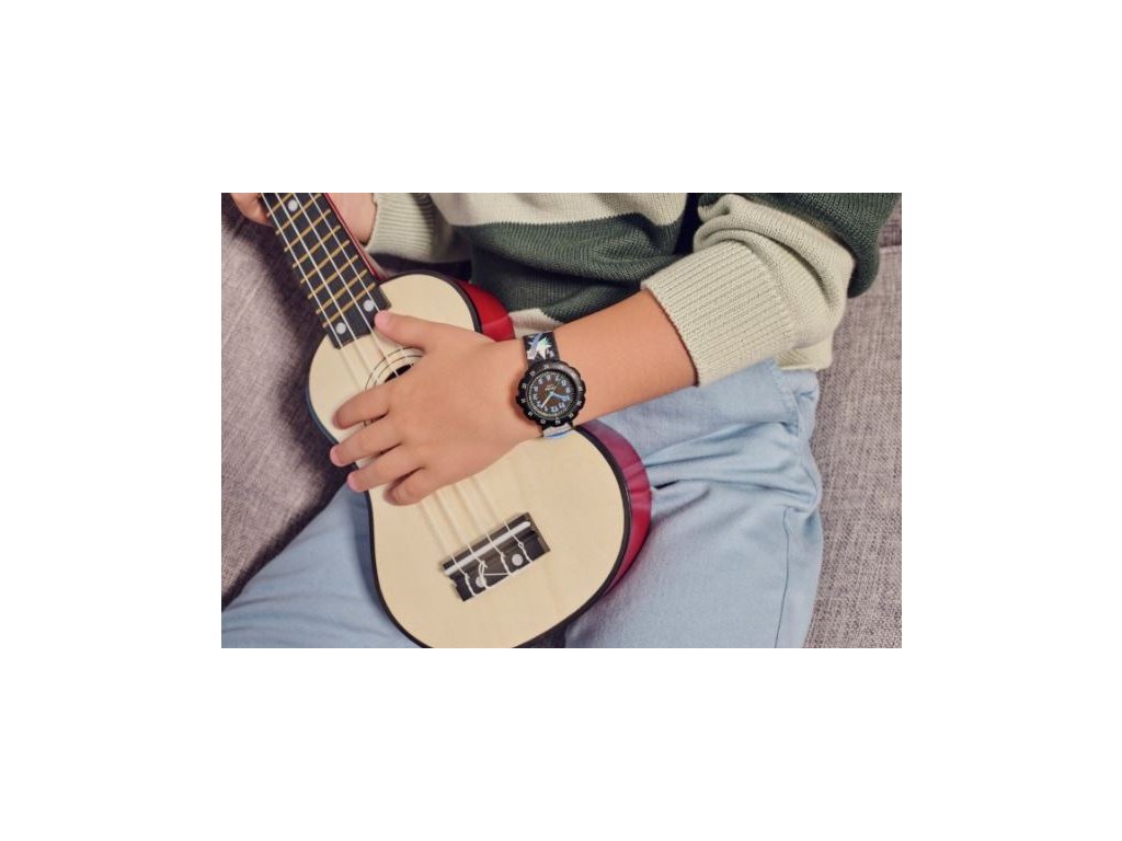 Dětské hodinky se vyrábí v dílnách švýcarské značky Swatch. Číselník zdobí výrazné číslice. Průsvitné pouzdro nechává nahlédnout do nitra bateriového strojku. Výhodou textilního řemínku, kterým je model opatřen je možnost praní v pračce. Pokud se hodinky zašpiní, stačí je vložit do ochranného sáčku, aby nedošlo k jejich poškrábání a prát na 40 st. Hodinky jsou navíc vodotěsné a je možno je používat i na plavání což je velká výhoda při dětských aktivitách.