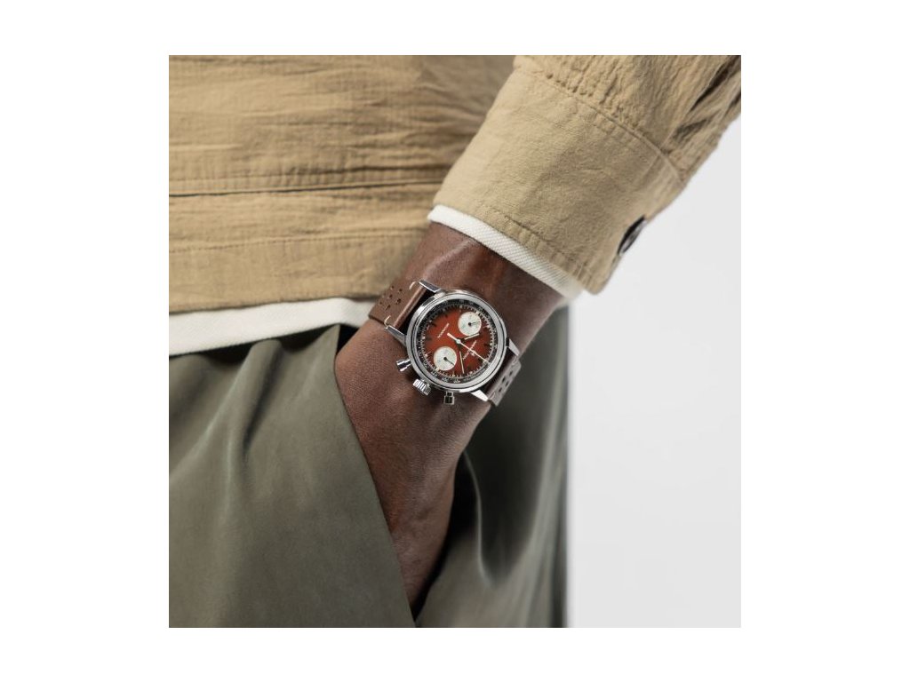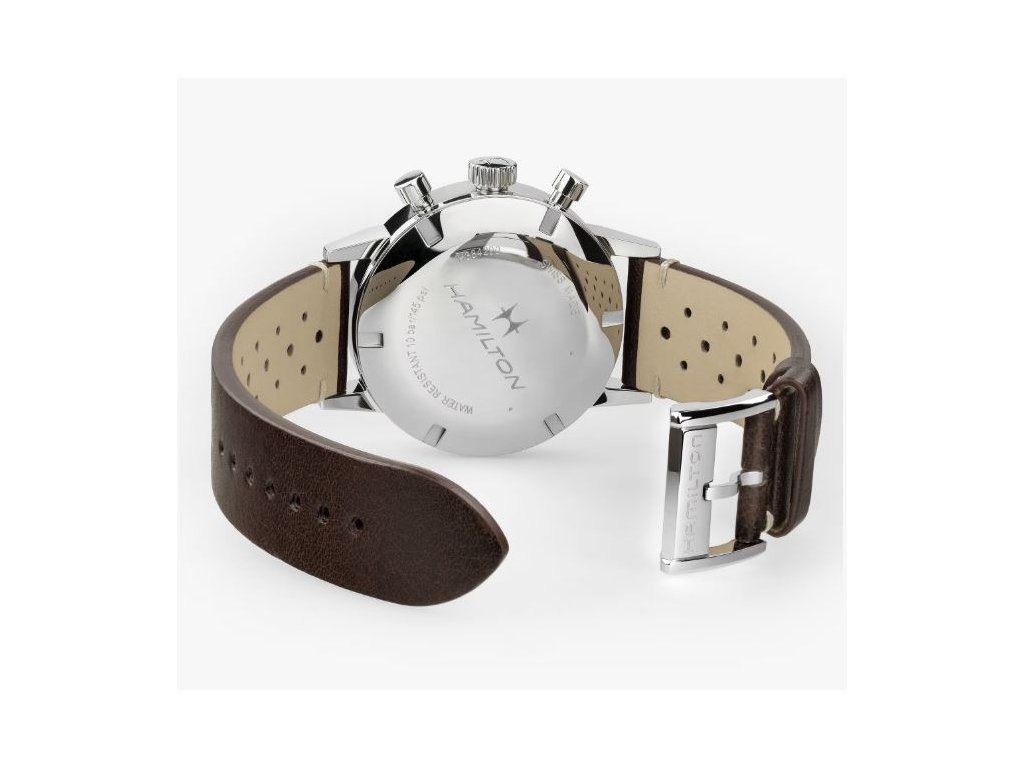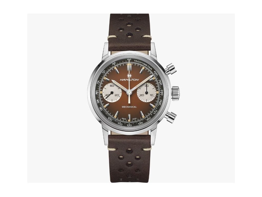 Hodinky American Classic Chronograph ve vintage hnědé barvě jsou naplněné duchem závodů 70. let a zachycují nadčasový americký styl. Ocelové pouzdro upevněné na perforovaném řemínku inspirovaném závody dotváří celkový vzhled. Hodinky pohání strojek H-51 s ručním nátahem a rezervou chodu 60 hodin. Součástí balení je jemný ocelový náramek.