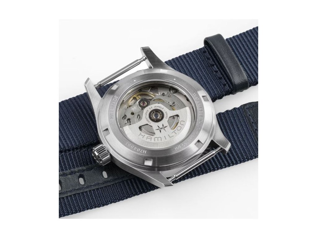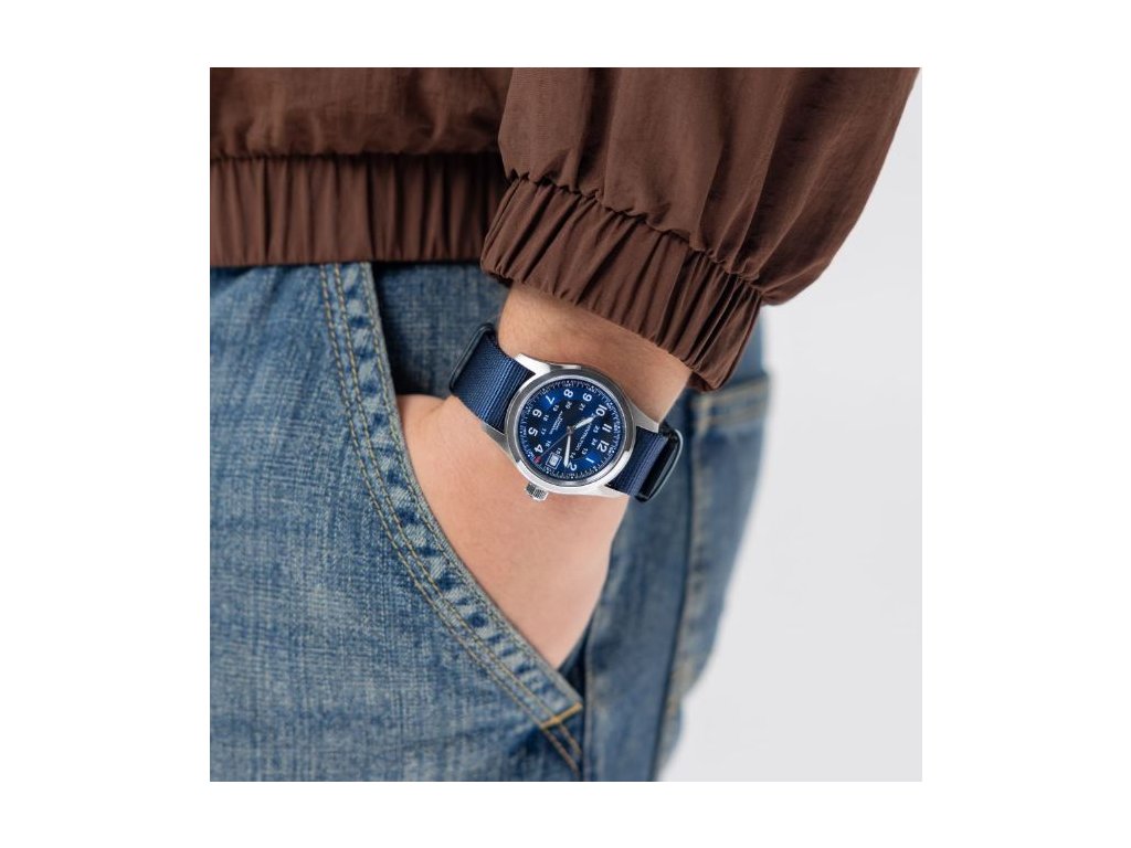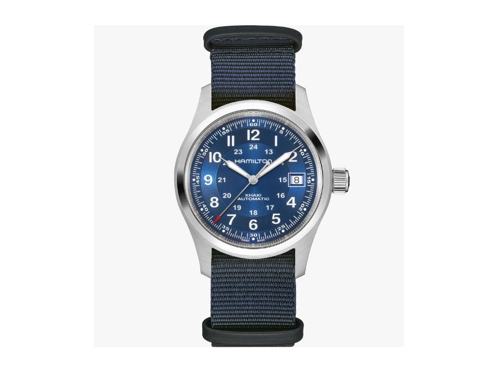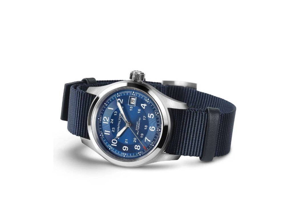 Model Khaki Field Automatic, inspirovaný původními vojenskými hodinkami, spojuje vojenské dědictví se současným designem. Indexy a ručky na modrém číselníku mají luminiscenční nátěr. Hodinky pohání automatický strojek s rezervou chodu 80 hodin a jsou upevněny na textilním řemínku.