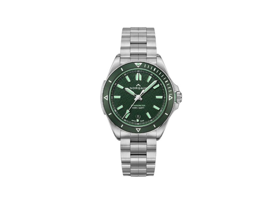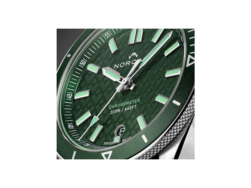 Sportovní hodinky v ocelovém pouzdře s jednosměrně otočnou vroubkovanou lunetou pro zajištění optimální manipulace. Na tmavě zeleném číselníku s novým vzorem hor vynikají indexy a ručičky se světle zeleným luminiscenčním nátěrem Super-LumiNova®. Hodinky pohání automatický strojek certifikovaný (COSC).