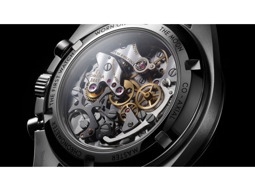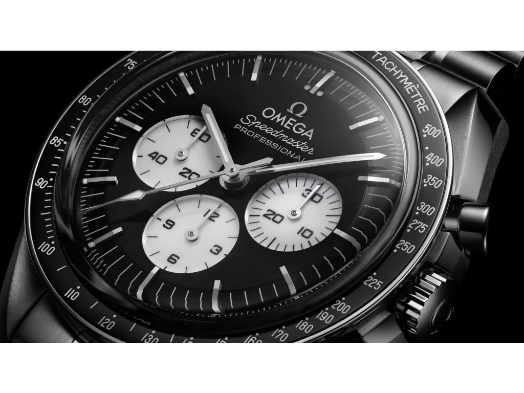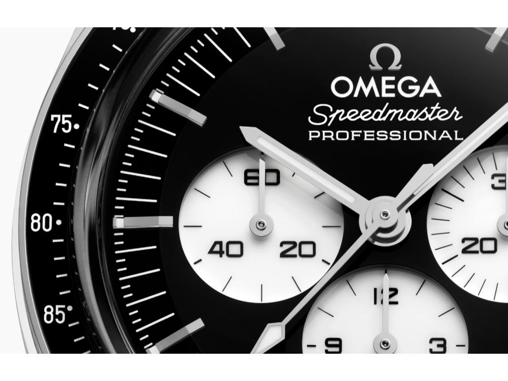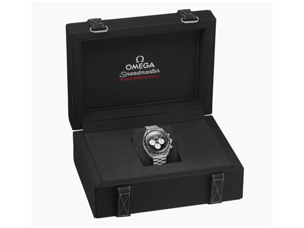 Hodinky Speedmaster Moonwatch patří k nejikoničtějším hodinkám na světě. Design tohoto modelu v ocelovém pouzdře je inspirován 4. generací hodinek Speedmaster nošených na Měsíci. Černě lakovaný stupňovitý číselník je doplněn bíle lakovanými subciferníky zasazenými do rhodiovaných obrub. Mezi detaily patří logo a indexy OMEGA, ručičky ve stylu Moonwatch a slavná tečka nad 90 na černém keramickém kroužku lunety. Hodinky jsou poháněny koaxiálním chronometrem OMEGA kalibru 3861.