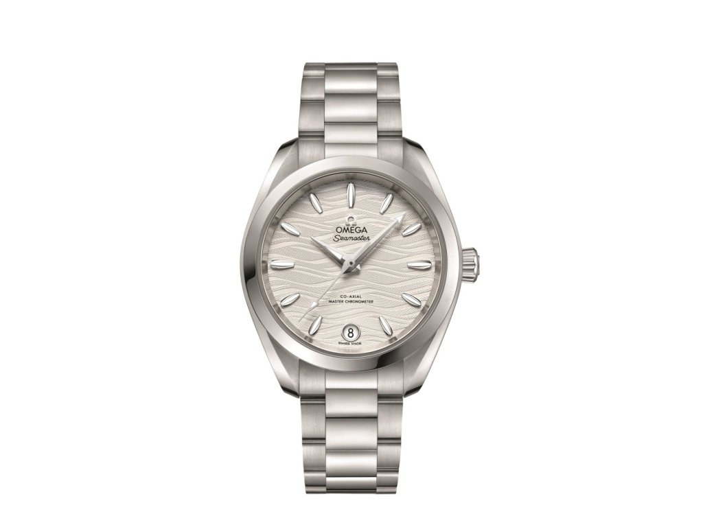 Luxusní dámské hodinky Omega Seamaster Aqua Terra jsou vyrobeny z nerezové oceli, velikost pouzdra je 34 mm. Hodinky mají safírové sklo, pod kterým se nachází světlý číselník s ukazatelem data na pozici č 6 .Hodinky jsou poháněny kalibrem OMEGA Co-Axial Master Chronometer kalibr 8800.