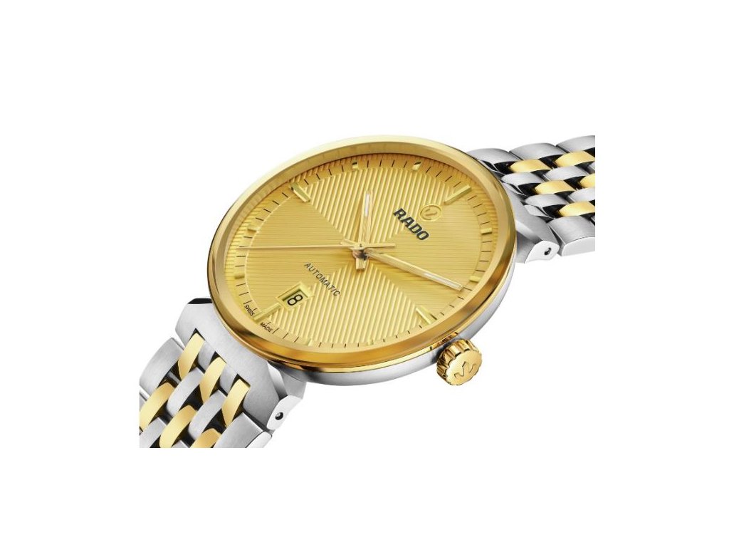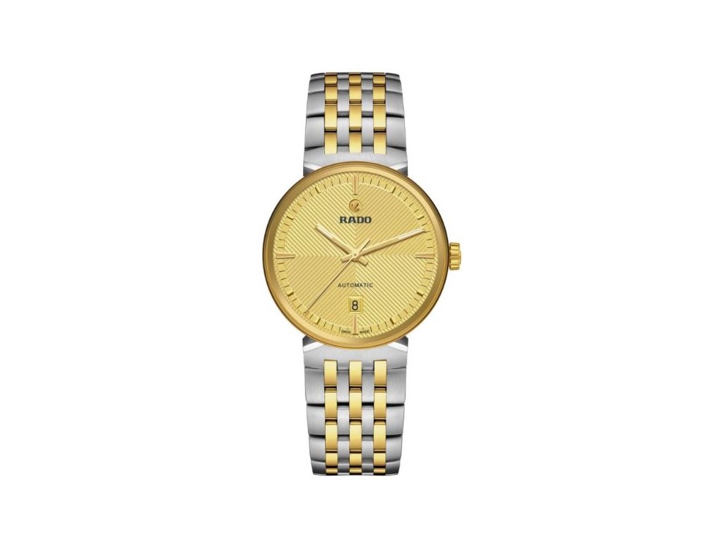 Elegantní hodinky v ocelovém pouzdře poháněné automatickým strojkem s rezervou chodu 80 hodin. Na reliéfním číselníku zlaté barvy jsou ručky s luminiscenční výplní Super-LumiNova®. Pouzdro hodinek je upevněno na náramku z nerezové oceli v bicolor provedení.