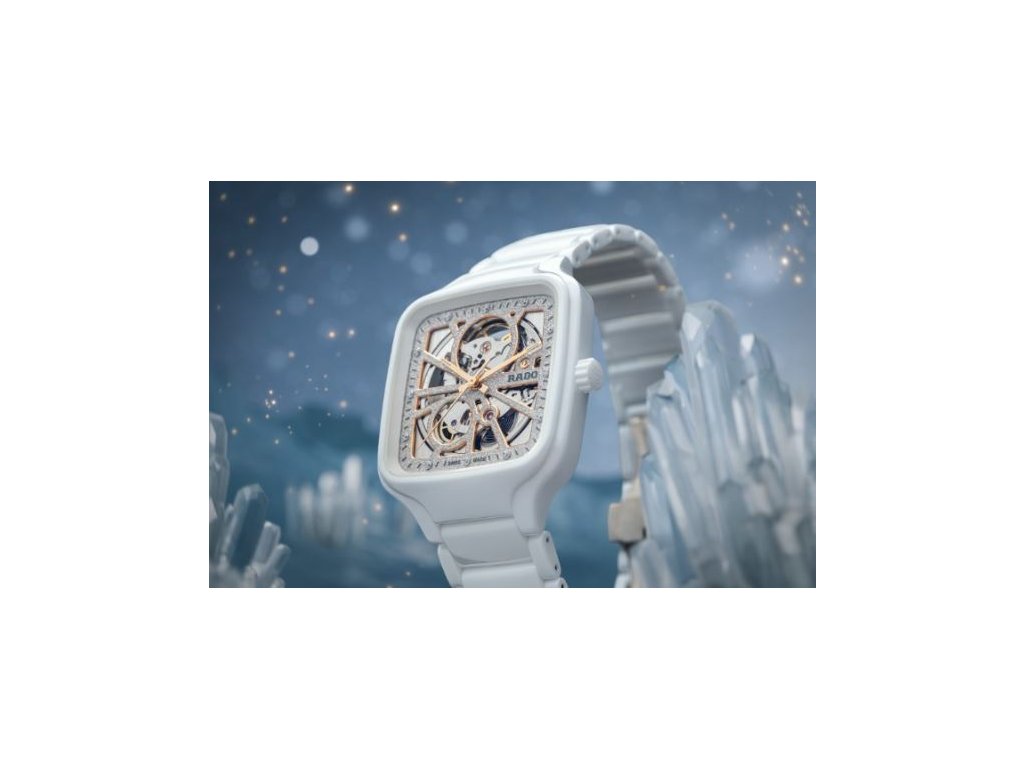 Společenské hodinky ve čtvercovém leštěném keramickém pouzdře poháněné automatickým strojkem s rezervou chodu 80 hodin. Třpytivý číselník a briliantové indexy vytvářejí oslnivý luxusní vzhled tohoto modelu. Skeletonový číselník s ručičkami v barvě růžového zlata, které jsou potaženy luminiscenční vrstvou Super-LumiNova®, umožňuje nahlednout do chodu strojku.