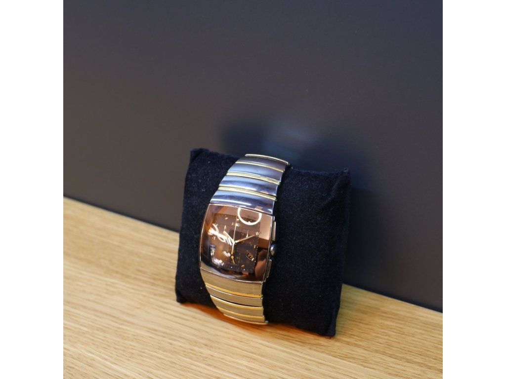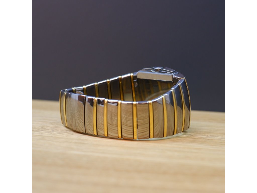 Zakoupeny v 2008 v naší firmě. Běžně nošené bez známek poškrábání, jen na spodním okraji skla je sražená hrana. 9/2024 výměna baterie, 12/2024 výměna spony. Chod i vovdotěsnost OK. Originální balení chybí.