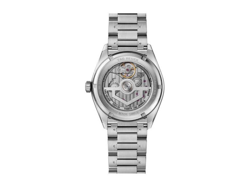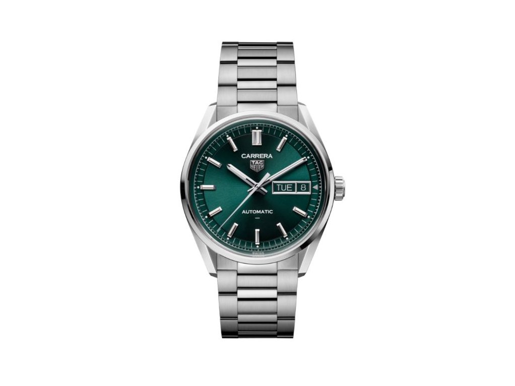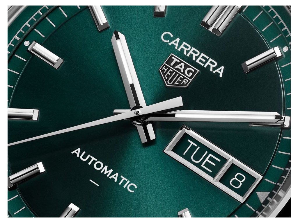 Elegantní pánské hodinky v ocelovém pouzdře. Na zeleném broušeném číselníku vynikají rhodiované ručičky a indexy. Symbolický vítězný věnec, vyrytý na zadní straně pouzdra, ctí odkaz TAG Heuer k motorsportu a vzdává hold historickým vítězným závodníkům s hodinkami Carrera. Hodinky jsou poháněny strojkem TH31-02 a nabízejí 80hodinovou rezervu chodu.