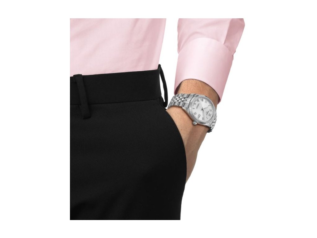 Klasické pánské hodinky v ocelovém pouzdře poháněné automatickým strojkem s C.O.S.C. certifikací, která je zárukou vysoké přesnosti. Stříbrný texturovaný číselník má ručičky s luminiscenční výplní.