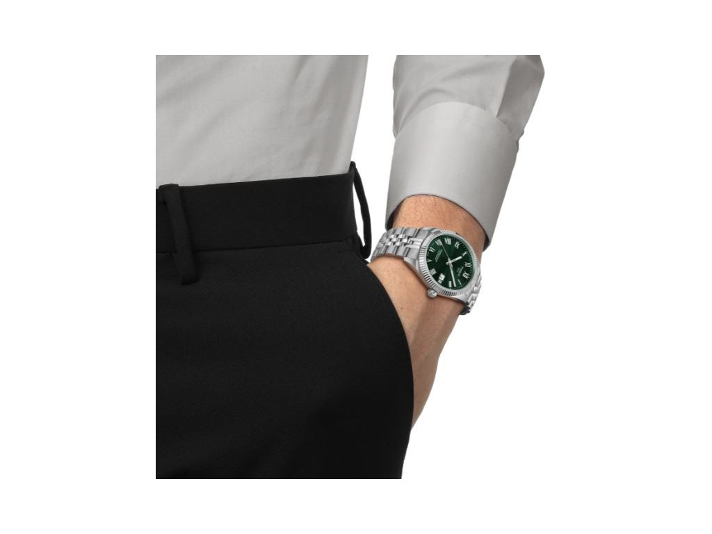 Klasické pánské hodinky v ocelovém pouzdře poháněné automatickým strojkem s C.O.S.C. certifikací, která je zárukou vysoké přesnosti. Zelený texturovaný číselník má ručičky s luminiscenční výplní.