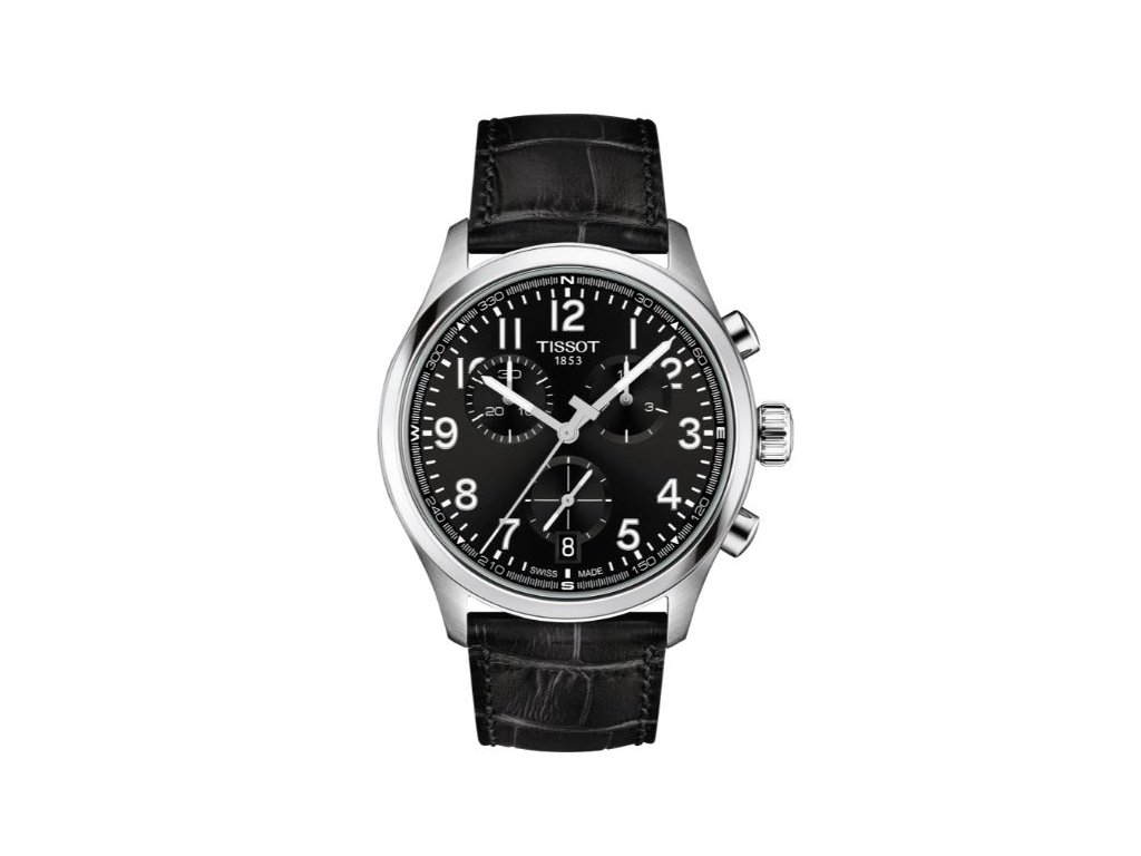 Pánské sportovně elegantní hodinky v ocelovém pouzdře o průměru 42mm inspirované modelem Chrono XL. Ručičky na černém číselníku s chronografem jsou vybaveny luminiscenční vrstvou Super-LumiNova®. Hodinky jsou upevněny na koženém řemínku, který lze snadno vyměňovat pomocí systému rychlé výměny řemínků Tissot.