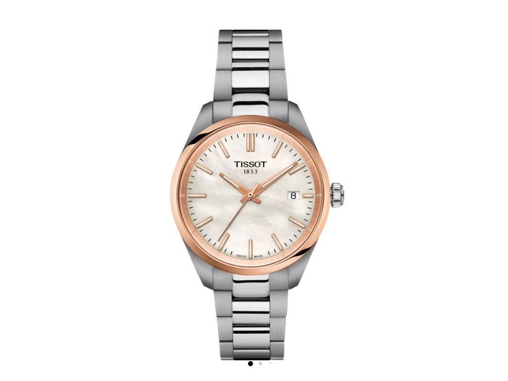 Klasické dámské hodinky v ocelovém pouzdře se zlatou PVD povrchovou úpravou v bicolor provedení. Indexy a ručičky na perleťovém číselníku mají luminiscenční výplň.