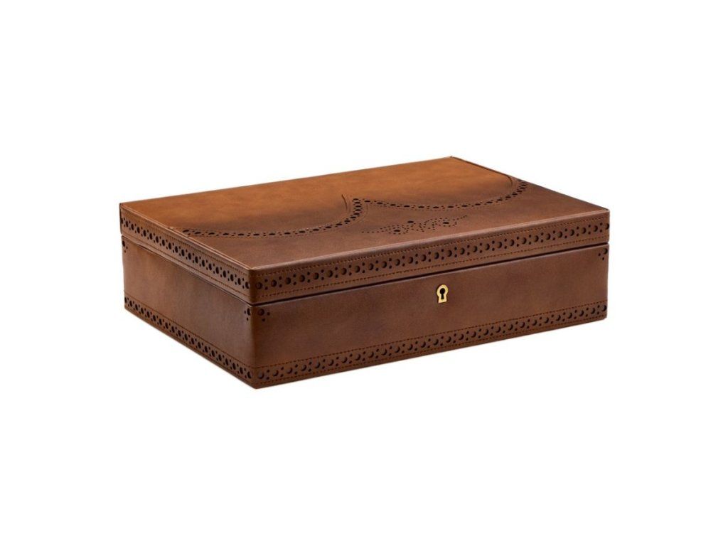 Box pro 10kusů hodinek z leštěné kůže zakončené staroanglickými mosaznými kováními, která spojuje precizní inženýrství s nadčasovými britskými detaily inspirovanými klasickými botami brogue. Součástí je integrovaný USB port pro chytré hodinky.