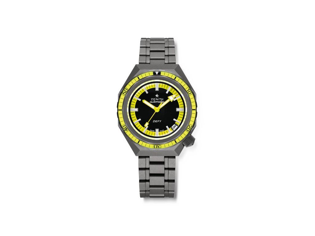 Model DEFY Revival, inspirovaný prvními potápěčskými hodinkami DEFY z roku 1969, je uložen v titanovém pouzdře o průměru 37 mm. Černo-žlutý číselník doplňují ručky a indexy s luminiscenční výplní. Hodinky pohání automatický manufakturní strojek Elite 670 s rezervou chodu 50 hodin.